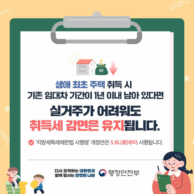 기존에는 3개월 이내로 실입주 불가할시 감면받은 취득세를 다시 추징하도록 되있습니다.