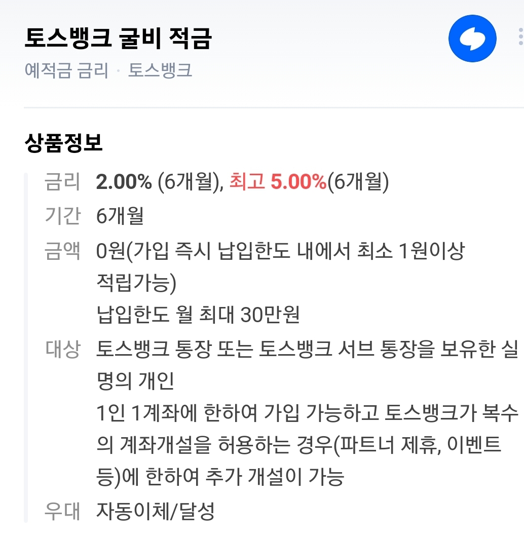 토스에서 또 하나의 적금 상품을 내놓았습니다.